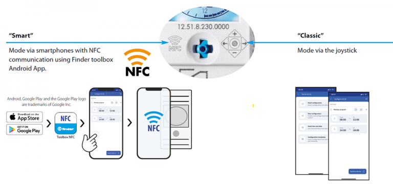 As with our 84 Series Industrial Timer, the 12 Series offers either joystick or the easy-to-use app for Android or Apple devices via NFC protocol for program transfer. The app-based programming not only makes it easy but offers the designer the flexibility to create the program without the device, save for future needs, and even share the program with other users around the globe. Once created, the program easily transfers via NFC to as many devices as needed – no power required. Output increases.