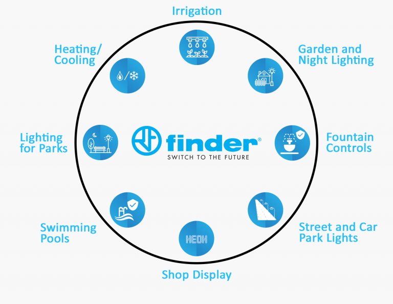 A modern-day digital time switch from Finder. Advantages/versatility – enhancing design solutions well beyond capabilities of older time switches.