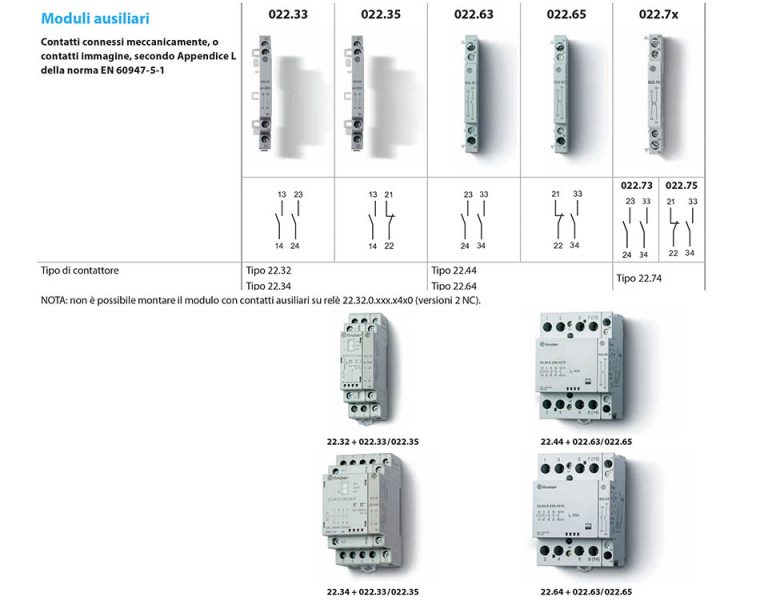Della gamma di contattori modulari Finder conformi alla norma EN 60947-4-1: mirror contacts, fanno parte: