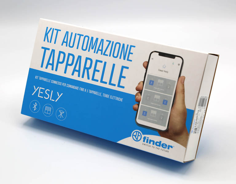 Il Kit Tapparelle del sistema Finder YESLY comprende tutti i dispositivi necessari per automatizzare fino a cinque tende o tapparelle elettriche.