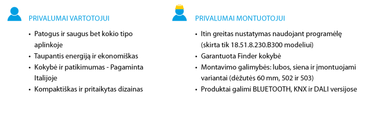 Technologijos, įmonės žinios ir ‘Made in Italy’ dizainas bei gamyba, yra veiksniai, išskiriantys Finder judesio jutiklius iš visų kitų. Asortimentą sudaro prietaisai, suprojektuoti taip, kad atitiktų įvairius instaliavimo poreikius ir tuo pačiu metu gerai atrodytų.