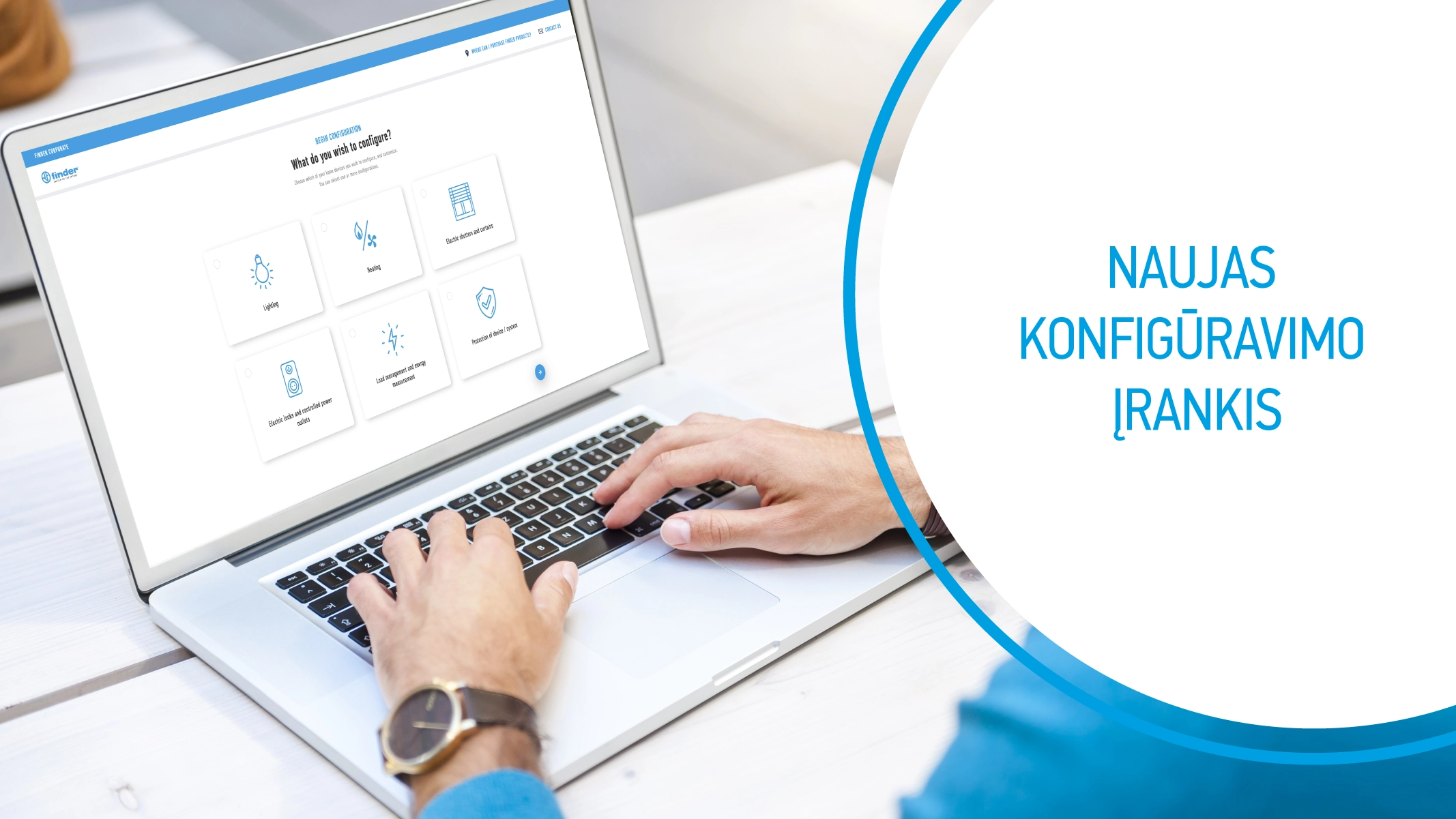 Naujas Finder internetinis konfigūratorius, skirtas civiliniam, komerciniam ir kitiems sektoriams yra idealus sprendimas tiems, kuriems reikia valdyti apšvietimą arba elektrines žaliuzes, patobulinti šildymo sistemą ar stebėti namuose suvartojamą energiją.