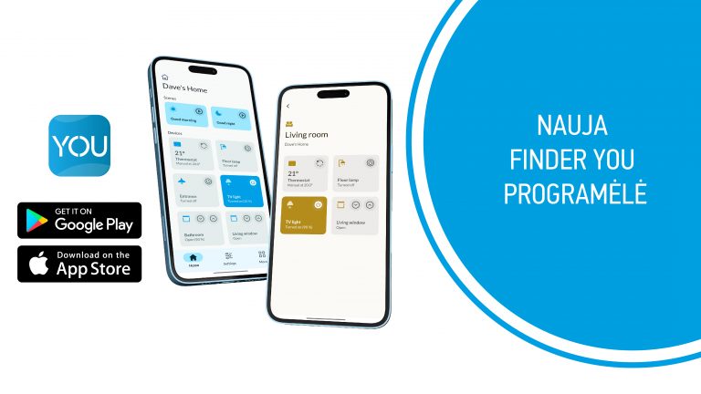 Finder YOU skirta montuotojams, kurie gali programuoti įvairius įrenginius (pvz., reles, reguliatorius ir termostatus), taip pat galutiniams vartotojams, kurie dabar su sumontuotais Finder įrenginiais valdo apšvietimą, temperatūrą, elektrines žaliuzes bei kitus prijungtus prietaisus greitai ir lengvai.