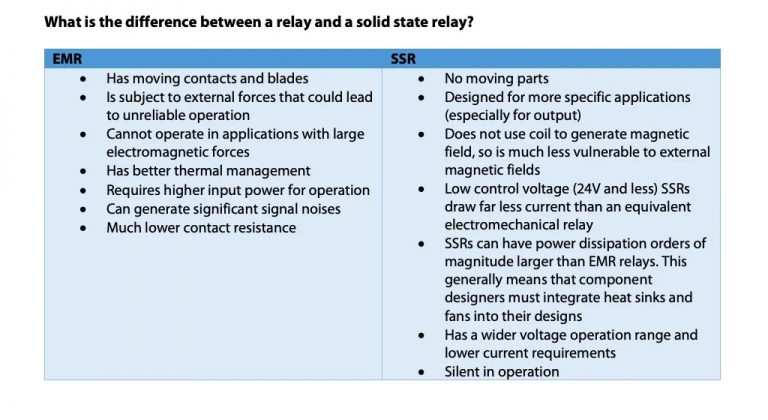 At full rated current an SSR generates about 10X as much heat as an electromechanical of similar current rating, so SSRs need proper thermal management whereas EMRs don’t. Spacing, ventilation, and PCB layout guidelines in Finder’s data sheets must be followed to ensure heat removal, prevent overheating, and avoid damage.