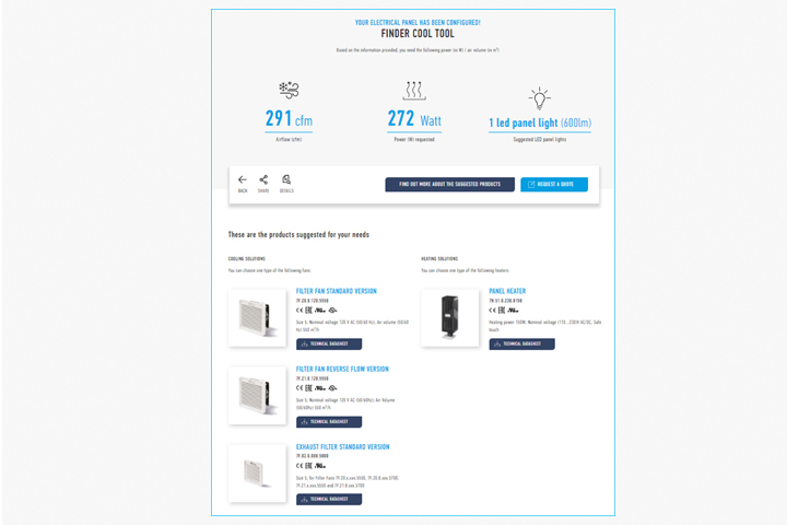 Finder developed a web based Thermo-Configurator to make these calculations easy and efficient. From selecting metric or US data, temperature, panel type and power, it is a guided step by step process to reach the final results.