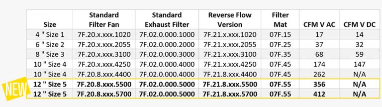 The size of the Exhaust Filter should match the size of the Filter Fan to achieve the best ventilation within the cabinet.