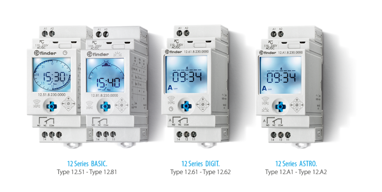 The range of Finder time switches with NFC technology includes 3 different types of products: