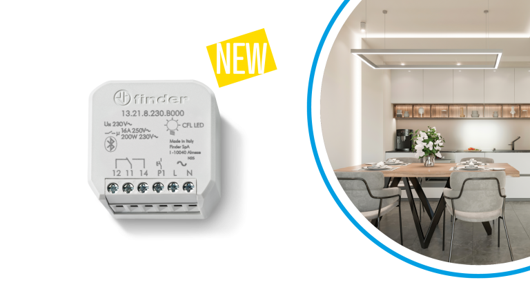 Finder’s Type 13.21.8.230.B000 YESLY multifunction relay features a volt-free changeover contact and BLE technology and can be easily integrated into the YESLY Smart home system.