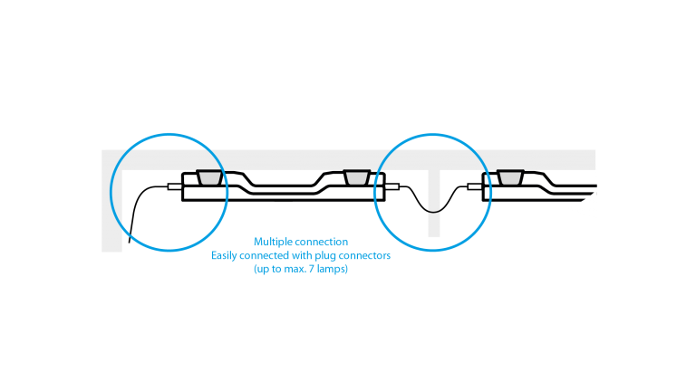 The new 7L Series 1200 lumen versions with direct switching are particularly suitable for applications where remote switching is required (such as via microswitches or limit switches). For example, the connection of the new Type 7L.46 models with direct switching via a door management microswitch within an electrical panel allows the lamp to be switched on and off as the panel door opens or closes. There therefore do not need an integrated ON/OFF switch or motion detector.