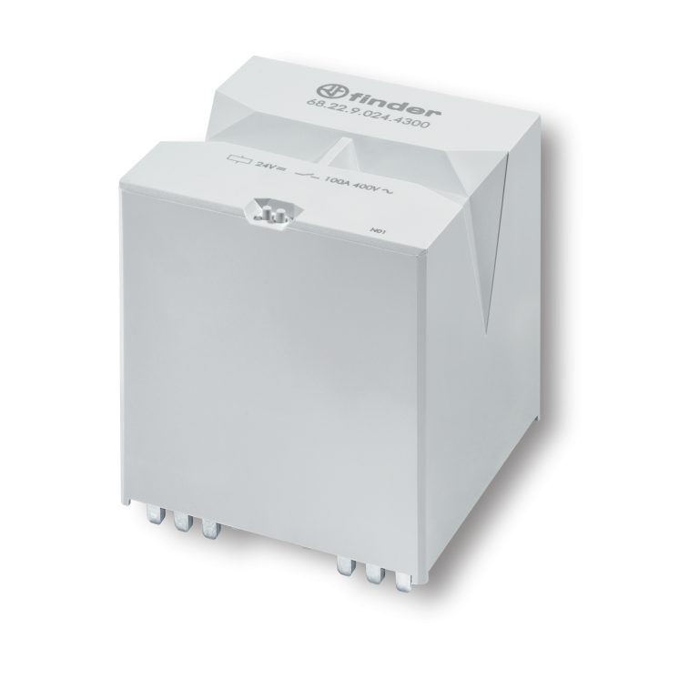 El relé de potencia tipo 68.22 es un dispositivo para circuito impreso con 2 contactos NA de 100A y carga nominal en AC1 de 40000 VA que está disponible en varias versiones, y está diseñado para poder maniobrar cargas muy elevadas, lo que hace que su uso sea muy práctico en el ámbito de las energías renovables y la movilidad eléctrica.