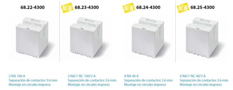 Tras el lanzamiento del relé de potencia Tipo 68.22 a principios de año, la serie se amplía con tres nuevos productos que enriquecen la gama. En concreto, el Tipo 68.24 diseñado con 4 contactos, 40 A, para maniobra de cargas trifásicas, y las versiones 68.23 y 68.25 con un contacto adicional NC de señalización.