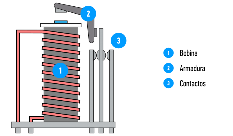El propósito de la armadura es empujar a los contactos para cambiar su posición.