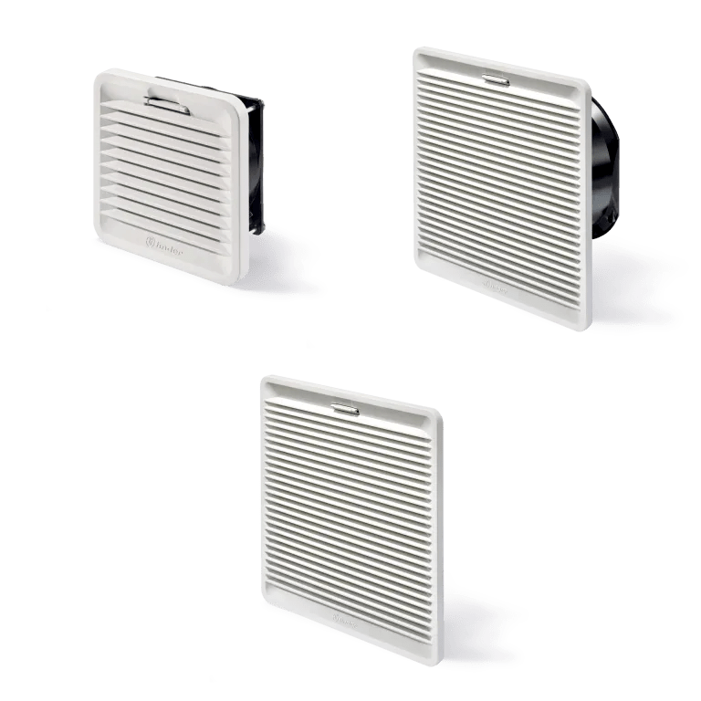 Lorsque la charge thermique d’un tableau électrique devient importante, il est indispensable de garantir une température maîtrisée avec un système de ventilation adapté pour protéger les composants internes. À cette fin, la Série 7F de Finder apporte une solution complète grâce à des ventilateurs à filtre et des grilles de sortie étudiés pour les armoires électriques, tant en intérieur qu’en extérieur.