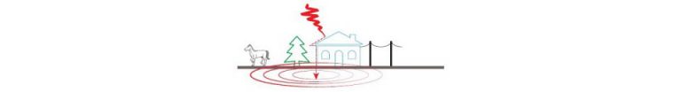 Fulminazione diretta dell’edificio. Se l’edificio è dotato di impianto parafulmine, il fulmine viene scaricato a terra portando in tensione l’impianto di terra e tutto ciò a cui esso è collegato.