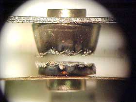 Nell’immagine a lato i contatti dei relè che mostrano gli effetti di sovracorrente grave dovuta a uso improprio.