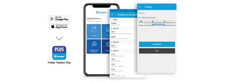 Attraverso l ’app Finder Toolbox, disponibile per sistemi Android e iOS, si potranno impostare le funzioni, le sequenze e le temporizzazioni da 1s a 24h, oltre ad associare i pulsanti wireless. Mentre tramite l’app Finder YESLY è possibile dare l’opportunità all’utente finale di gestire i propri carichi in modo smart.