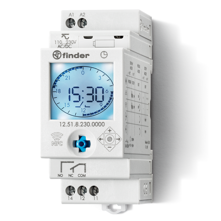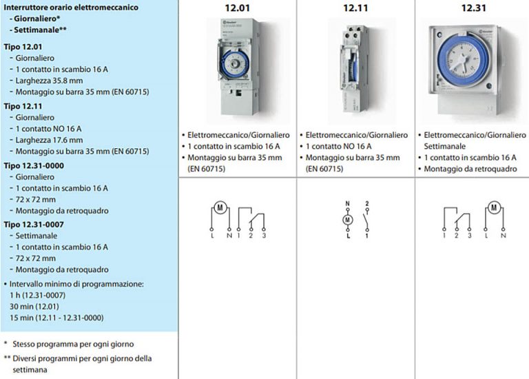 Per chi non è avvezzo alle nuove tecnologie ed è alla ricerca di un interruttore orario classico, può invece orientarsi sulla gamma di orologi Finder elettromeccanici e a cavalieri, composta dal tipo 12.01, 12.11 (giornalieri) e tipo 12.31 (giornaliero e settimanale).