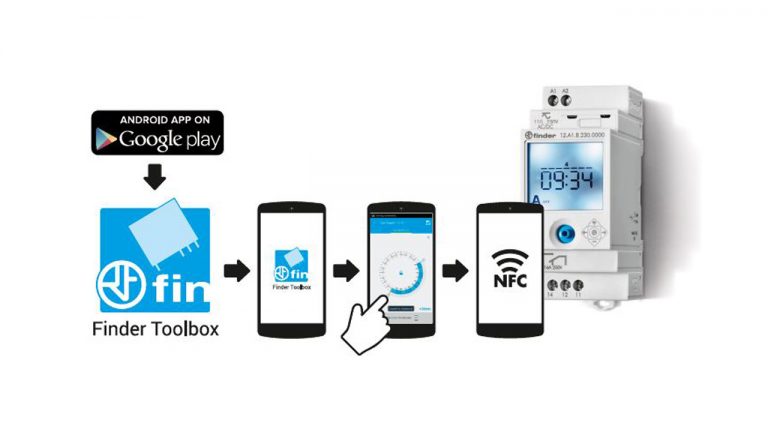 Tutti gli interruttori orari digitali Finder sono programmabili attraverso NFC con l’apposita app Finder Toolbox, sono dotati di batteria tampone che rende particolarmente pratico il set up iniziale prima dell’installazione nel quadro ed effettuano automaticamente il passaggio ora legale/solare.