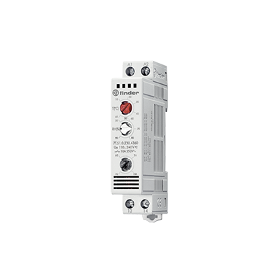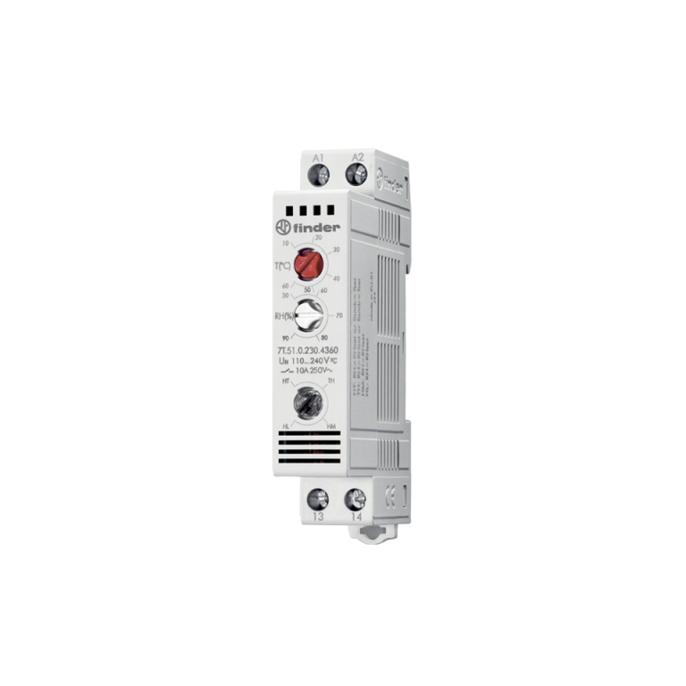 Il termoigrostato tipo 7T.51 Finder è composto da un controllo elettronico di temperatura e umidità regolabili con due selettori. I campi di regolazione sono: