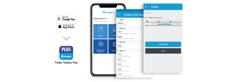 La configurazione del Tipo 13.21.8.230.B000 avviene tramite l’app gratuita “Finder Toolbox PLUS”, disponibile per iOS e Android, in pochi e semplici passaggi.