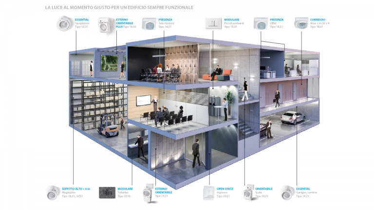 Installando i dispositivi della Serie 18 Finder si garantisce una maggiore sicurezza degli ambienti e l’ottimizzazione dei consumi. Le logiche di funzionamento dei rilevatori Finder dipendono dalla presenza/dal movimento nell’area di rilevamento, limitando così l’attivazione delle luci solo quando l’ambiente risulta “abitato o frequentato”.