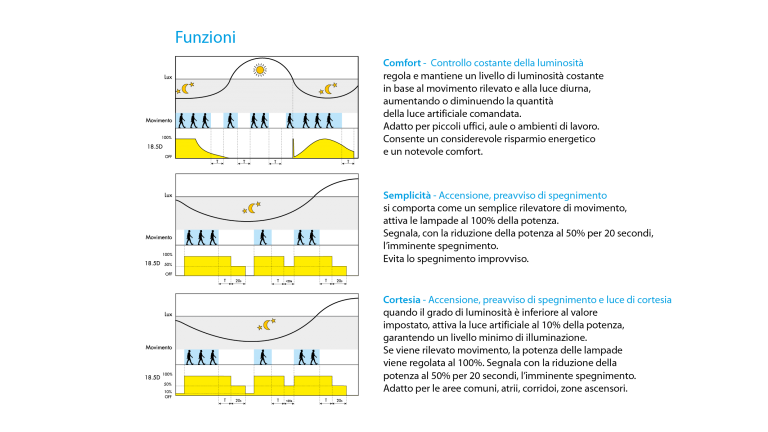 A loro volta suddivisi nella versione EASY (Tipo 18.51-300), con funzionamento in modalità automatica, e nella versione ON/OFF (Tipo 18.51-0040) con pulsante esterno per forzare il contatto in uscita e funzionalità della compensazione dinamica della luminosità.