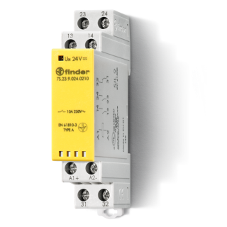 Tipo 7S.32 – Relè modulare con contatti guidati, 2 contattiRelè con contatti guidati Tipo A secondo EN 61810-3 (ex EN 50205) per applicazioni di sicurezzaPer la sicurezza funzionale di macchine e impianti secondo la EN 13849-1