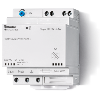 Tipo 78.60 - Alimentatore modulare 24V DC, 60 WAlta efficienza (fino a 91%) e basso consumo in stand-by (< 0.3 W)Piccole dimensioni: 70 mm (4 moduli) di larghezza, 61 mm di profondità