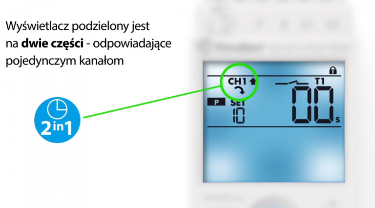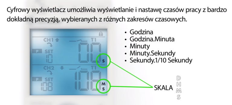 Dodatkowo kanały wyposażone są w funkcję dwóch niezależnych sygnałów wejściowych Start (jeden dla każdego z kanałów), jeden wspólny sygnał wejściowy Reset (do wyboru dla jednego lub dwóch kanałów), jeden wspólny sygnał wejściowy Pauza (do wyboru dla jednego lub dwóch kanałów). Dzięki czemu mamy możliwość dodatkowego wpływania na proces sterowania, kiedy tylko tego chcemy.