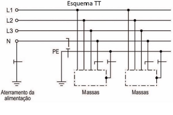 Sistema TT – O neutro neste sistema se conecta diretamente à terra, e as massas conectam -se a um terra local, separado do neutro.