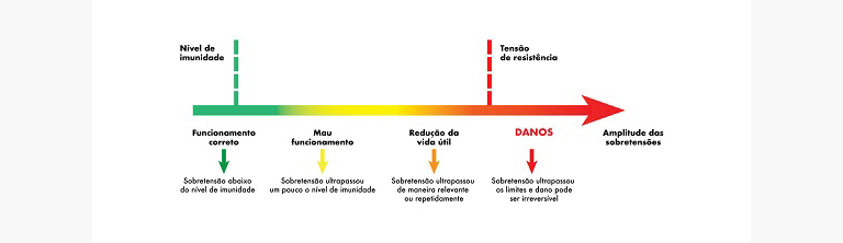 As tecnologias disponíveis atualmente no mercado consideram certo nível de imunidade para as sobretensões, conforme ilustrado no gráfico abaixo: