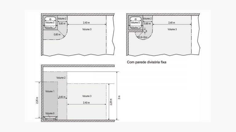 No Capítulo 9 – Requisitos complementares para instalações ou locais específicos, a norma estabelece prescrições específicas para locais contendo banheiras, piso-boxes, boxes e outros compartimentos para banho, pois nesses locais o risco de choque elétrico aumenta, devido à redução da resistência do corpo humano e ao contato com o potencial da terra. Tais prescrições são relativas à determinação das características gerais do ambiente, seleção e instalação dos componentes, sendo, por exemplo, para ambientes com chuveiro ou ducha e piso-boxe: