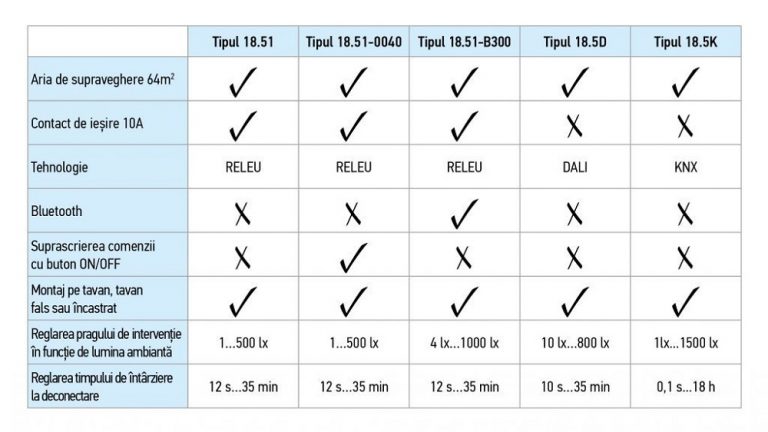 În gama de senzori de mișcare și prezență din Seria 18 se regăsesc dispozitivele de Tipul 18.5x, potrivite pentru aplicații de interior și disponibile în 5 versiuni diferite.