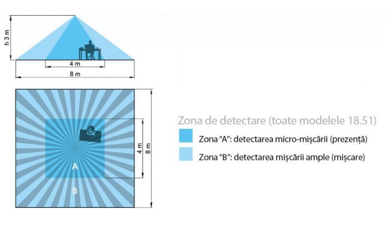 Toate dispozitivele de Tipul 18.5x sunt potrivite pentru detectarea micro-mișcărilor și sunt ideale pentru instalarea în birouri, săli de ședințe sau săli de clasă. Acestea se împart în următoarele versiuni:
